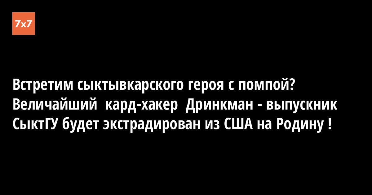Встретим сыктывкарского героя с помпой? Величайший кард-хакер Дринкман - выпускник СыктГУ будет экстрадирован из США на Родину !