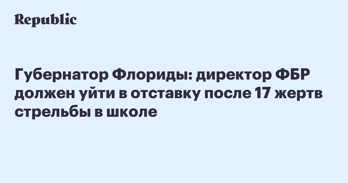 Губернатор Флориды Рик Скотт заявил, что директор ФБР Кристофер Рэй должен уйти в отставку после того, как 17 человек погибли в результате стрельбы во флоридской школе Marjory Stoneman Douglas. Соответствующий призыв опубликован на сайте губернатора.