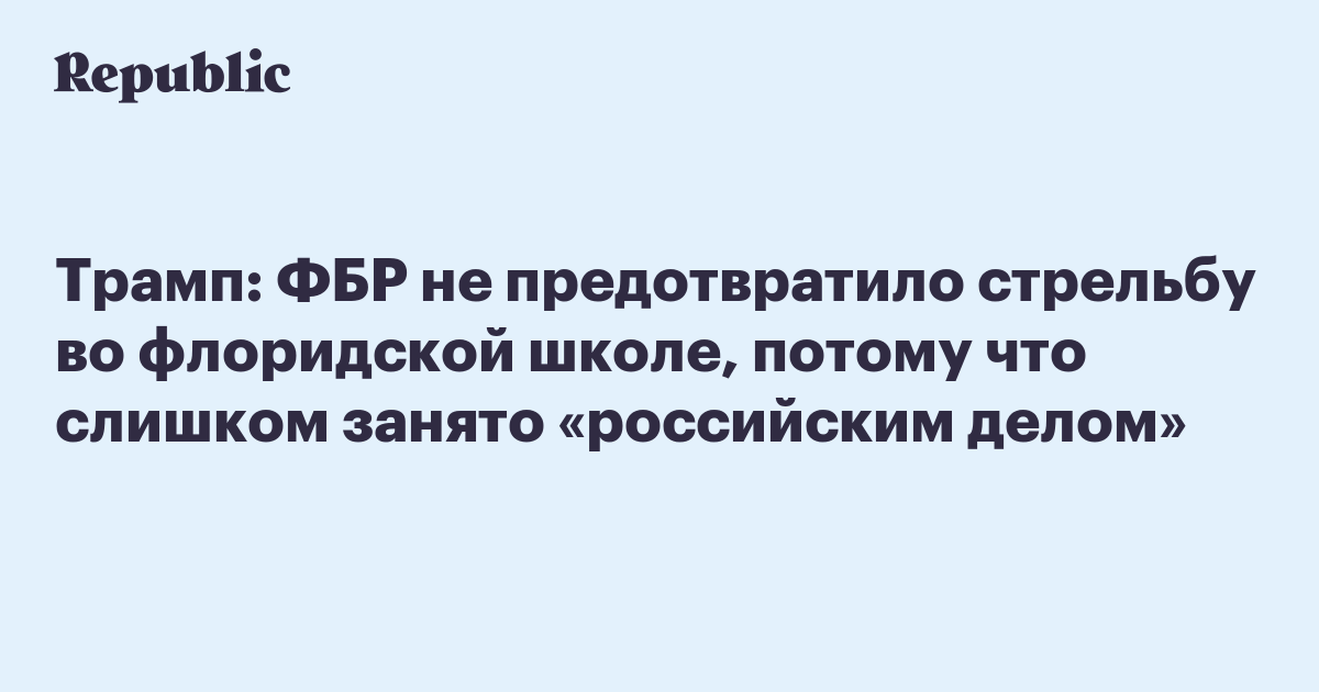 ФБР не уделило должного внимания предупреждениям о возможном вооруженном нападении на школу Marjory Stoneman Douglas во Флориде, потому что тратит слишком много времени, пытаясь доказать сговор избирательного штаба Дональда Трампа с российскими властями перед выборами 2016 года. Об этом Трамп написал в своем твиттере.
