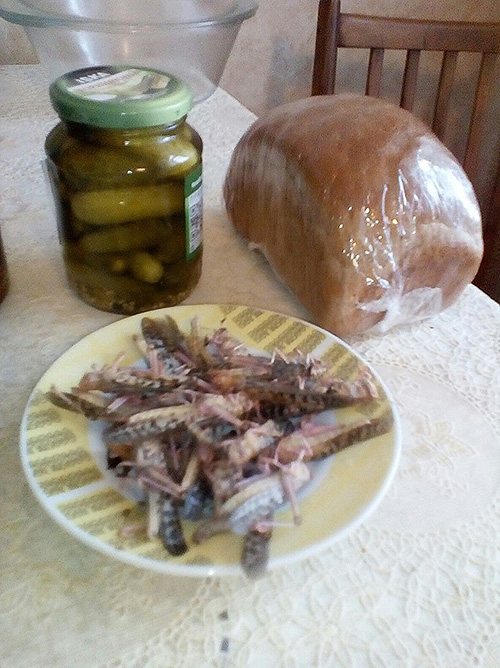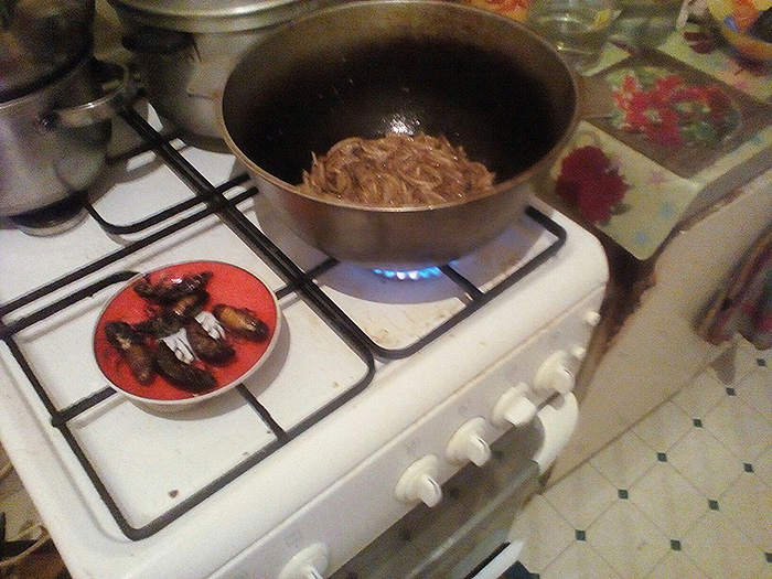 Рецепты очень простые; что-то я сам знал, что-то посмотрел в интернете. Кидаешь насекомое в кипящее масло и готовишь минуты полторы. Как картошку фри. Самое оптимальное по вкусовым качествам — это личинки. Сначала их на три-четыре часа кладешь в воду, а потом жаришь в масле. Буквально несколько секунд. Пахнут они очень приятно, похоже на запах жареных семечек.