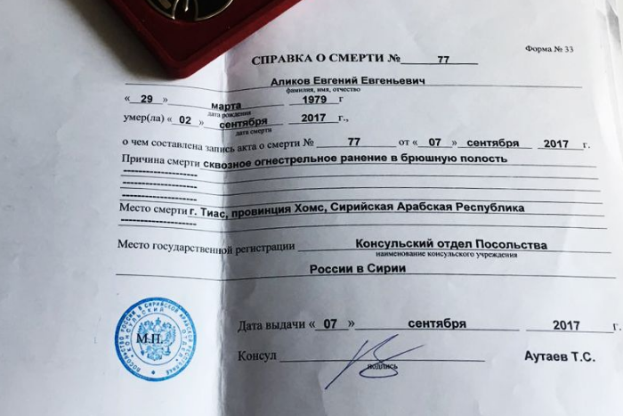 BBC опубликовало историю о бойце ЧВК «Вагнера» Евгении Аликове, который погиб в Сирии. По данным издания, всего за сентябрь 2017 года в Сирии погибли 54 бойца из России.