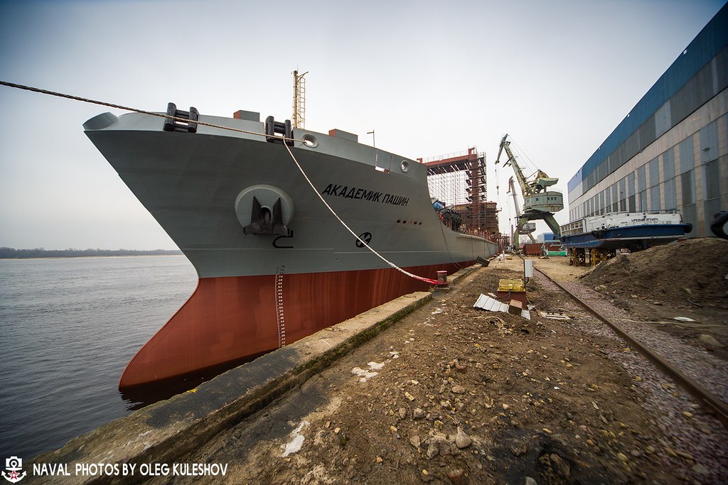 На Невском судостроительном заводе продолжается постройка "Академик Пашин". В настоящее время продолжаются швартовные испытания. Ведется подготовка к пуско-наладочным работам уникальной системы передачи грузов на ходу.