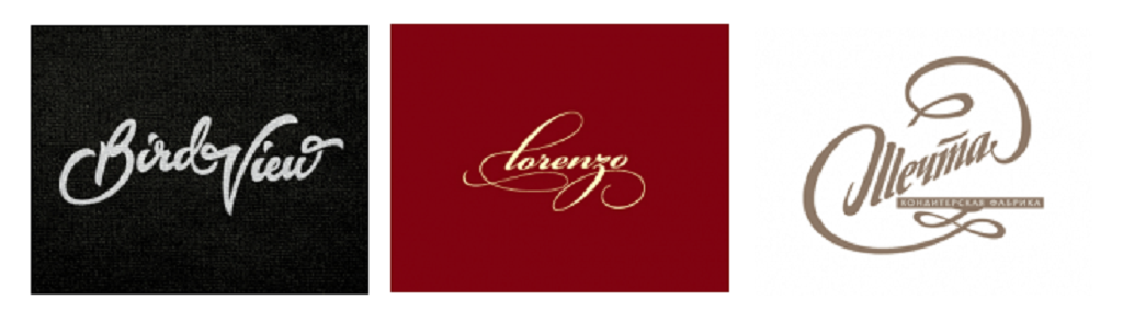 Примеры логотипов с использованием прообразов животного мира и образа человека. Изображение с сайта alexsv.ru - Каллиграфия. Стиль с использованием искусства красивого письма. Если нашли хорошего каллиграфа, на него стоит потратить деньги. Главное – следить за тем, чтобы название оставалось читаемым.