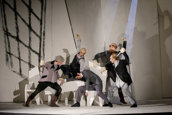 Изначально Сергей [Вихарев] и Павел [Гершензон] ставили задачу: три акта — три художественных направления. Первый акт решен в традиционном ключе. Во втором все мизансцены я поставил заново, потому что в нашем спектакле по сравнению с оригиналом радикально поменялся сценический контекст. То же относится к третьему акту.