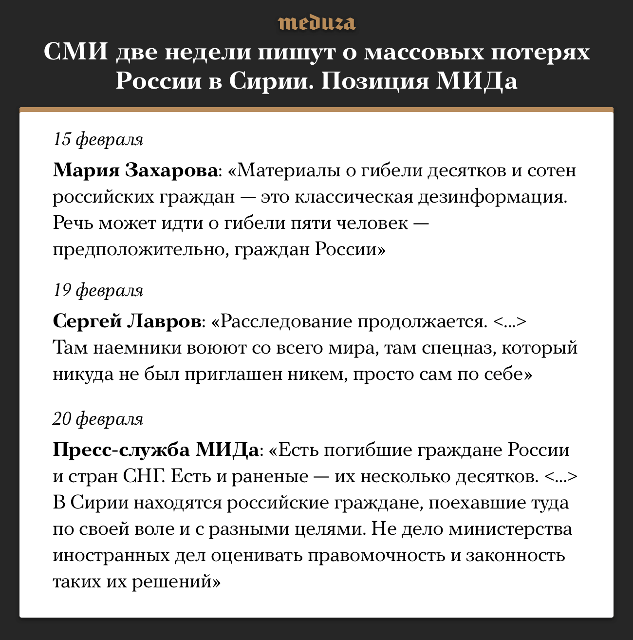 СМИ две недели пишут о массовых потерях России в Сирии. Позиция МИДа — в трех цитатах
