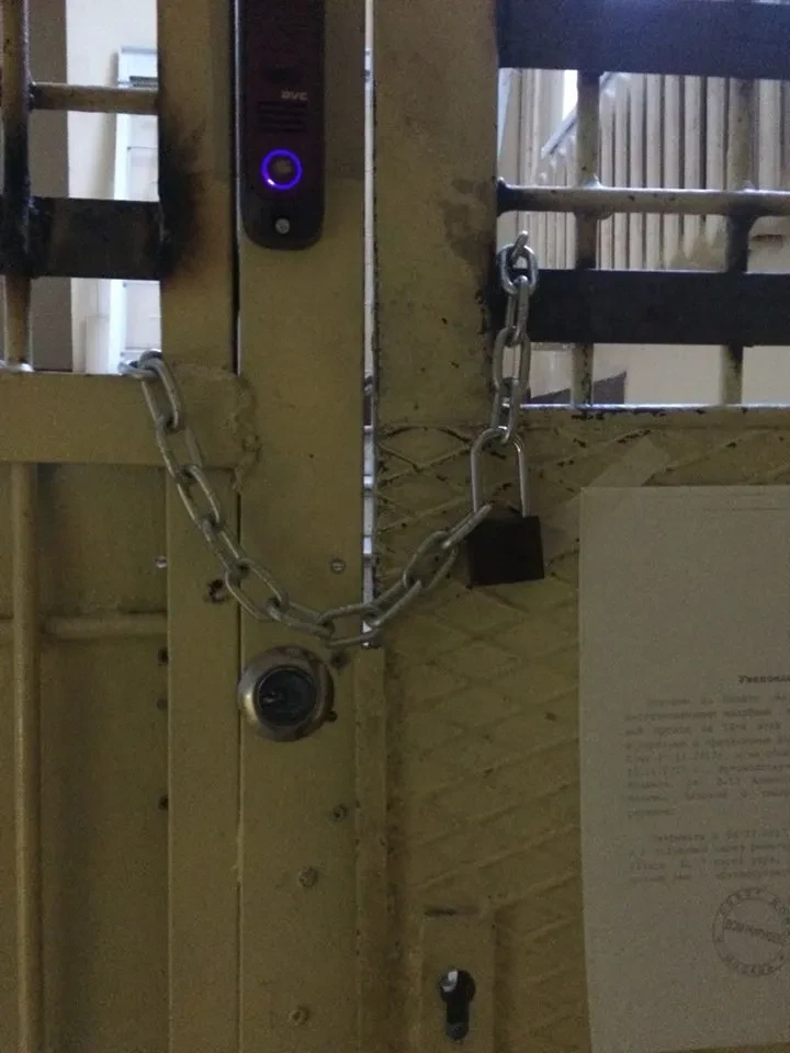 Решетка — единственный выход. Лифты доезжают только до 9 этажа. Если бы у девушки начались роды или, не дай бог, случился пожар? На нашем этаже, кроме самой редакции, еще находится квартира 90-летней пенсионерки, ветерана и заслуженного деятеля Союза художников. По итогам произошедшего мы обратились в полицию, однако ответа пока не получили, хотя прошел уже месяц.