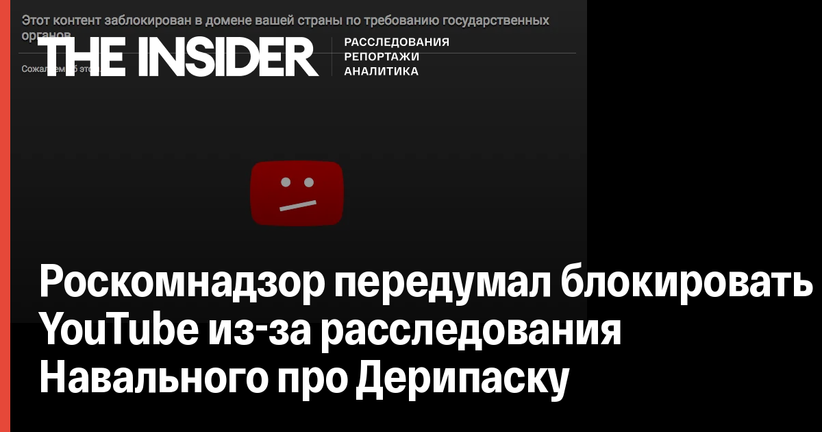Роскомнадзор передумал блокировать YouTube из-за расследования Навального про Дерипаску