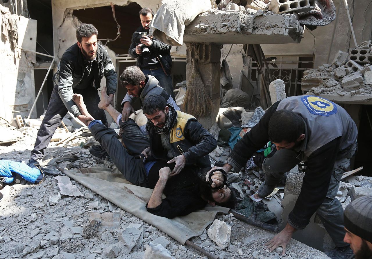 Abdulmonam Eassa / AFP / Scanpix / LETA Сакба, Восточная Гута, 20 февраля 2018 годаAbdulmonam Eassa / AFP / Scanpix / LETA Женщина с детьми в поисках укрытия в населенном пункте Хамурия в Восточной Гуте, 19 февраля 2018-гоHamza Al-Ajweh / AFP / Scanpix / LETA Импровизированная больница в населенном пункте Дума в Восточной Гуте, 20 февраля 2018 годаSyrian Civil Defense White Helmets / AP / Scanpix / LETA Восточная Гута, 21 февраля 2018 годаAbdulmonam Eassa / AFP / Scanpix / LETA Разборы завалов в Хамурии, Восточная Гута, 21 февраля 2018-гоMohammed Badra / EPA / Scanpix / LETA Пострадавшие дети в больнице Думы в Восточной Гуте, 19 февраля 2018 года