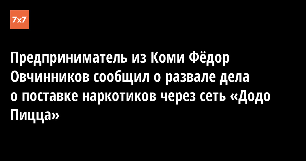 Дело о поставке наркотиков из Латинской Америки через одну из пиццерий сети «Додо Пицца» развалилось на этапе следствия. Об этом 21 февраля в социальной сети Facebook сообщил основатель сети, сыктывкарский предприниматель Фёдор Овчинников.