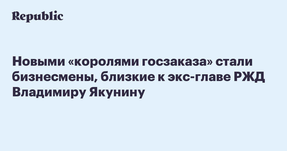 Новыми «королями госзаказа» стали бизнесмены, близкие к экс-главе РЖД Владимиру Якунину