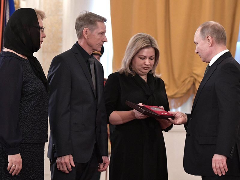 Путин вручил "Золотую Звезду" Героя России вдове погибшего в Сирии летчика Романа Филипова