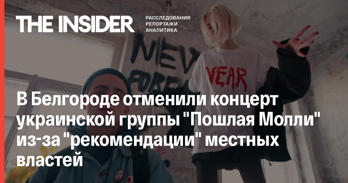 В Белгороде отменили концерт группы «Пошлая Молли», который должен был пройти 22 февраля. Как сообщается в группе «Белгород — это интересно» во «ВКонтакте», власти в течение 10 дней «настойчиво рекомендовали» клубу Soda concert hall отказаться от проведения концерта.