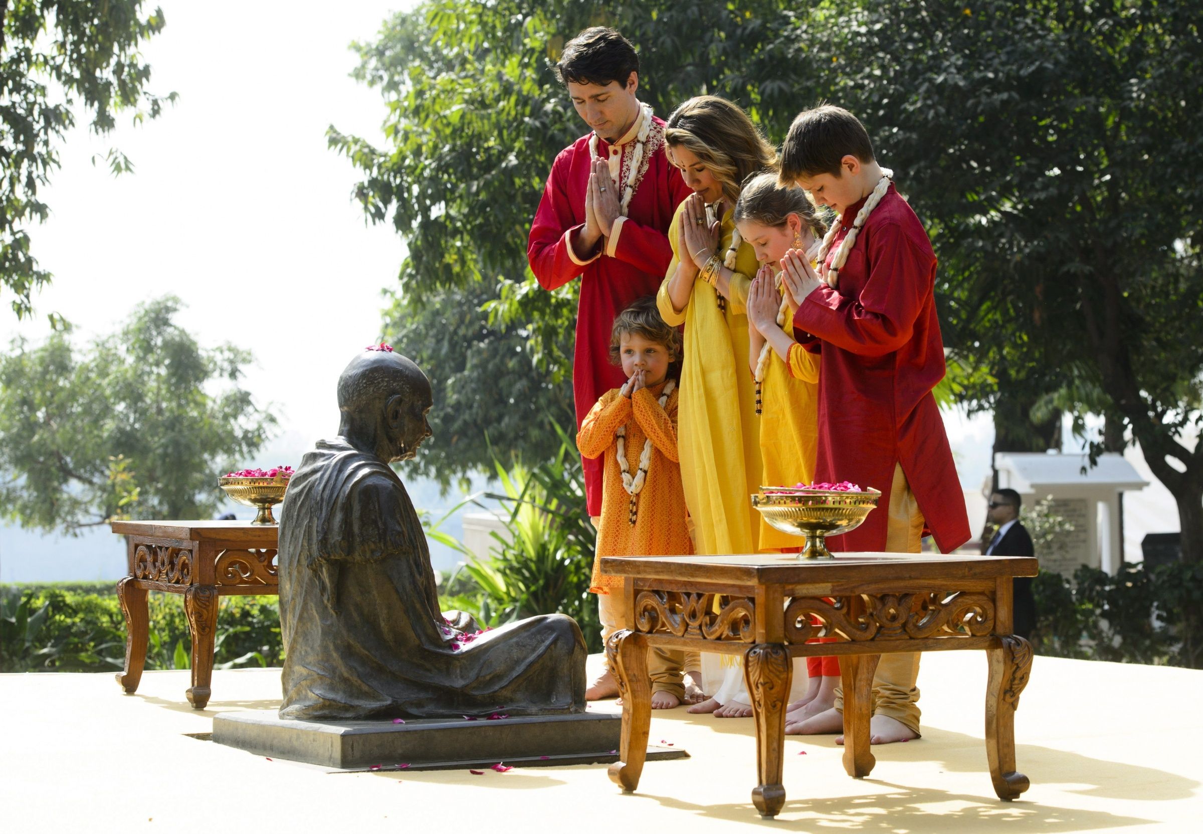Джастин Трюдо с семьей прибыл в Индию 17 февраля. Стоя на трапе самолета все члены семьи политика сложили руки в традиционном приветствии, а впоследствии фотографировались в традиционных индийских костюмах. Как отметили журналисты The New York Times, такой наряд лучше подошел бы не для официального визита, а для съемок в болливудском фильме. Критики обвинили Трюдо в снисходительном отношении к индийской культуре.