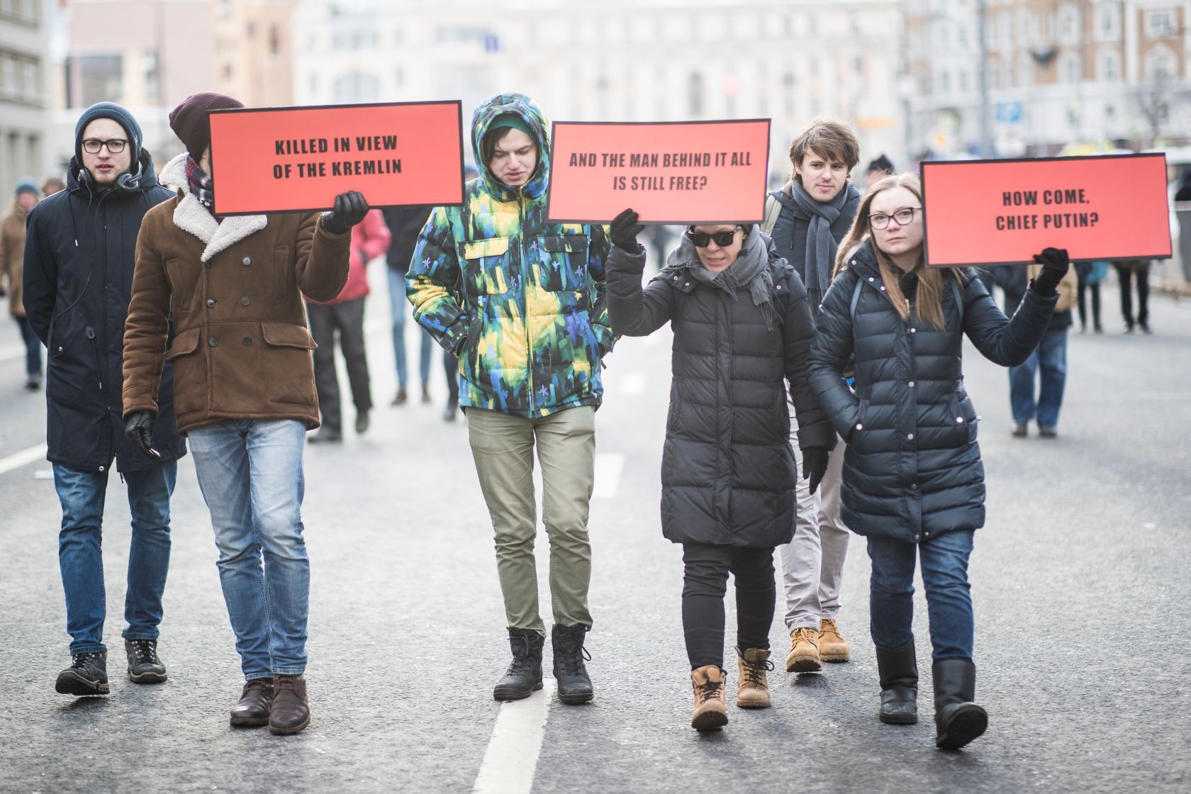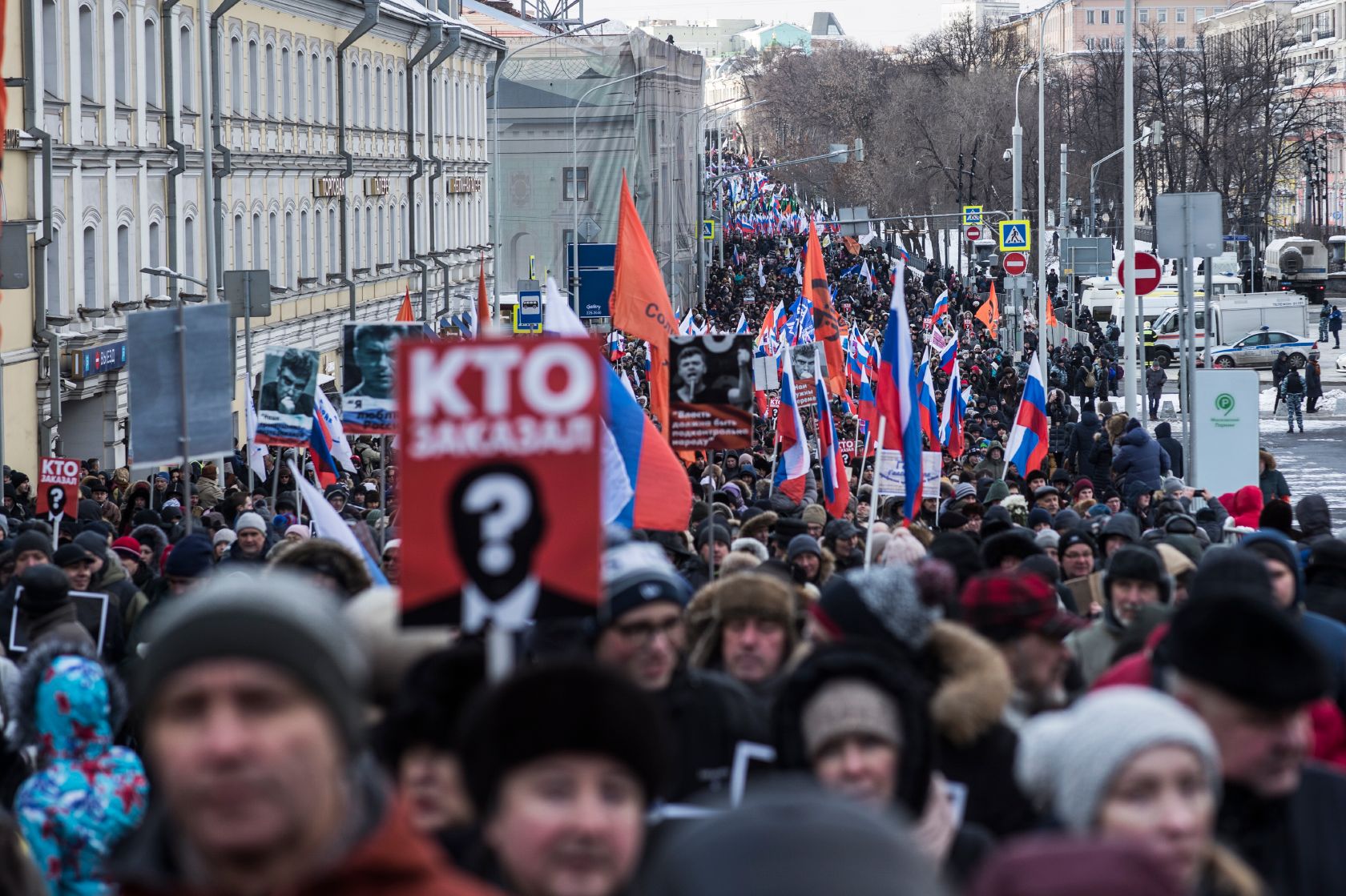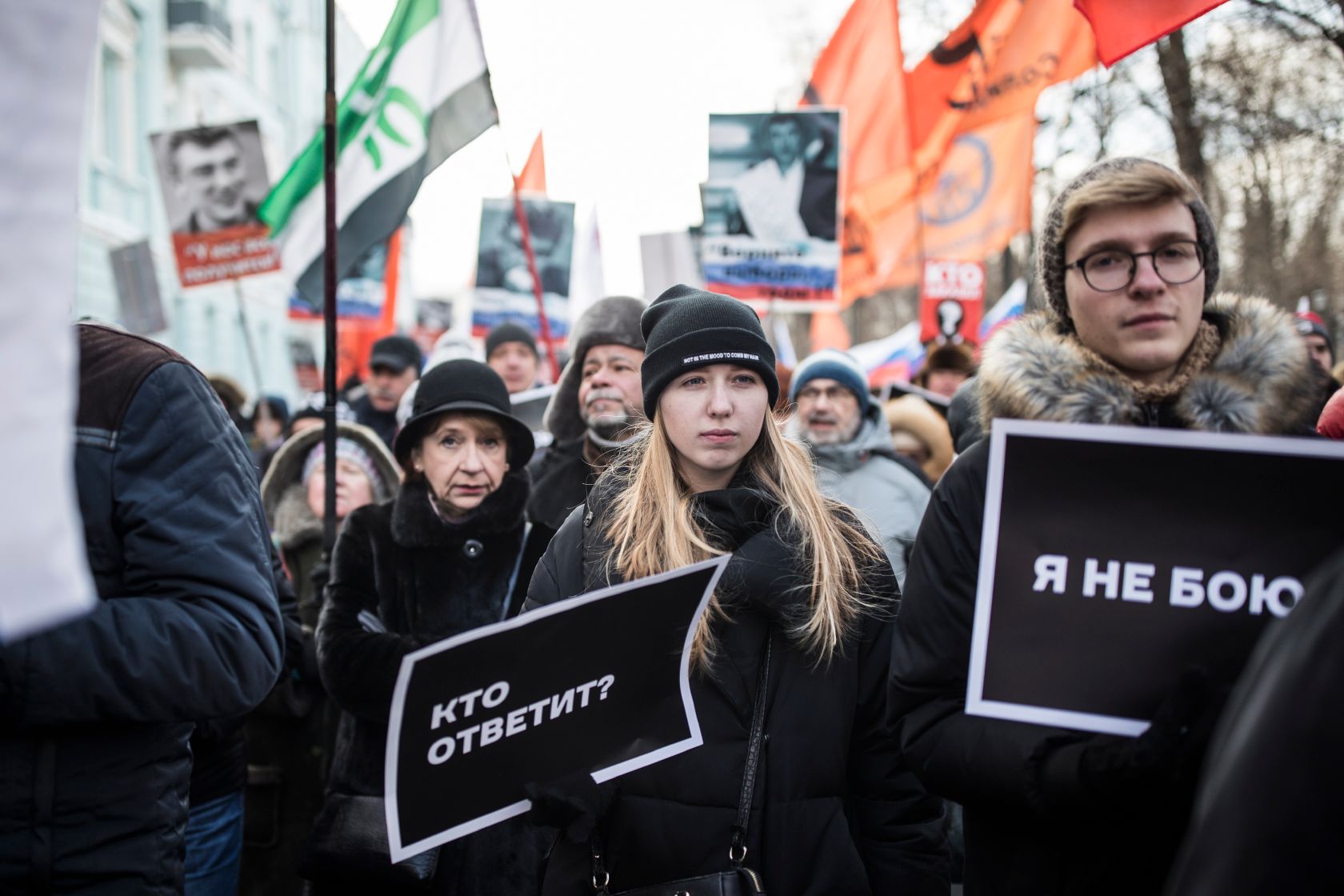 25 февраля в четвертый раз прошел согласованный с московскими властями марш в память об оппозиционном политике Борисе Немцове, который был убит 27 февраля 2015 года на Москворецком мосту. В этом году, по подсчетам «Белого счетчика», в шествии через центр Москвы приняли участие 7,6 тысячи человек — это меньше, чем во все предыдущие годы. За маршем наблюдала корреспондент «Медузы» Ирина Кравцова.