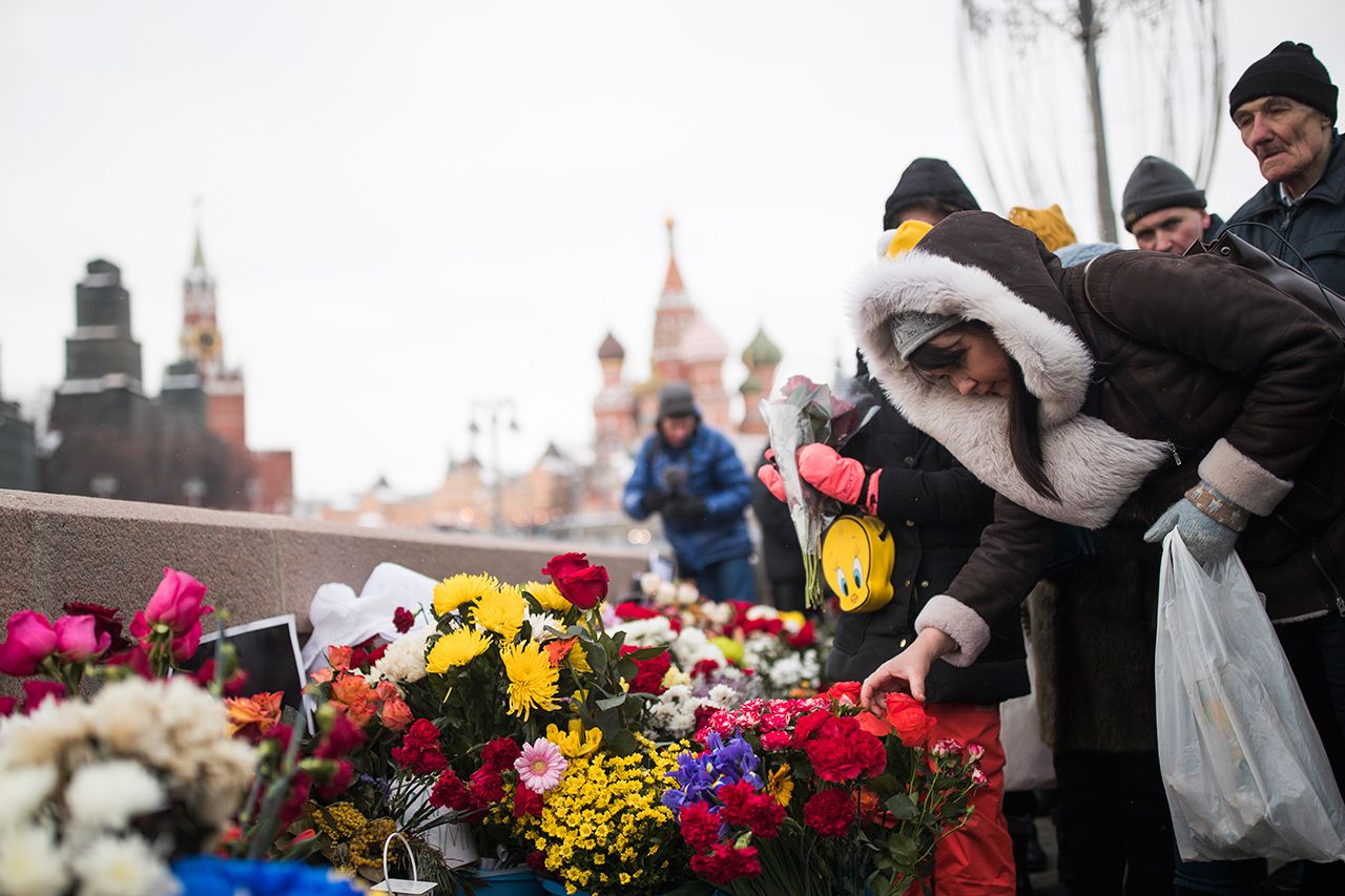 Те, кто все же дошли до Москворецкого моста, возложили на месте убийства Бориса Немцова цветы — в основном, розы и гвоздики. Кто-то принес плюшевого медведя и игрушечную собаку. Большинство, оставив цветы, сразу уходили по своим делам, некоторые задерживались, чтобы сфотографироваться возле импровизированного мемориала. К половине пятого практически все участники шествия разошлись.