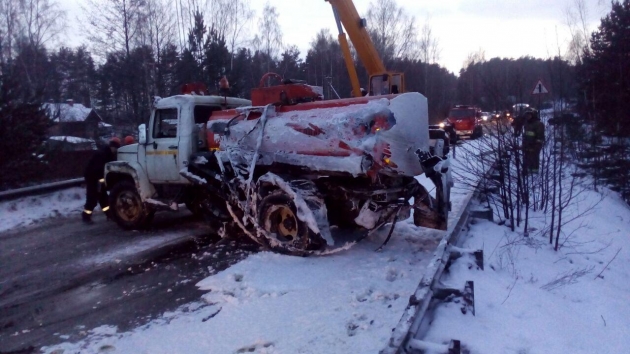 В Ленобласти перевернулся бензовоз с топливом. Часть вылилась на лед Финского залива