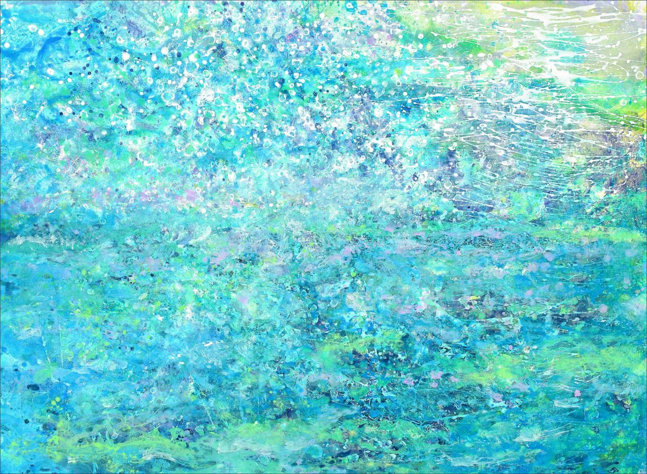 Когда картина высохла, я осмелилась встать на стул, чтобы сфотографировать работу Айрис. Мое сердце забилось сильнее: хитросплетение синих, зеленых и желтых мазков смотрелось весьма впечатляюще. Я не ожидала, что трехлетний ребенок на такое способен.