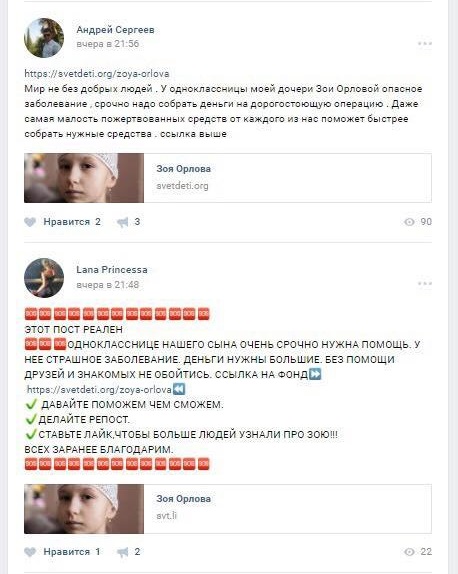 Если говорить о статистике, то на проблему Зои откликнулось примерно в три раза больше людей, чем обычно, если судить по опыту нашего фонда. Они собрали в шесть раз больше, чем столько людей обычно собирает. Каждый пятый из тех 5,5 тысяч человек, кто зашел на страничку Зои, оказал помощь. Половина пришла на сайт из «ВКонтакте».