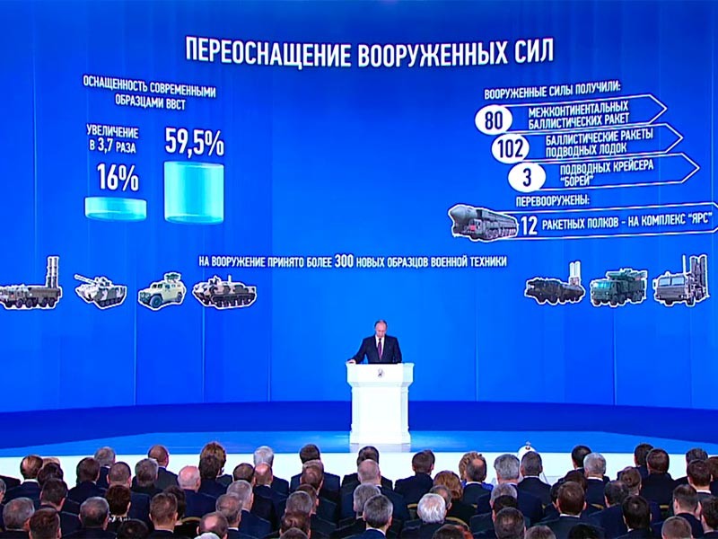 Выступая 1 марта в выставочном зале "Манеж", президент РФ, в частности, заявил о том, что Россия не только не ограничилась созданием новых межконтинентальных баллистических ракет, но и начала разработку оружия, вообще не использующего баллистическую траекторию полета.