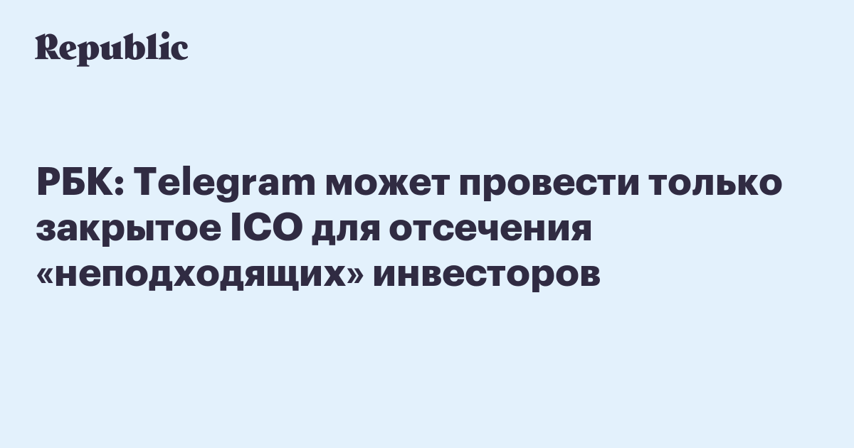 В материалах от имени венчурных фондов iTechCapital и Da Vinci Capital инвесторов приглашают к участию во втором раунде закрытого ICO. Как пояснил один из источников РБК, после второго раунда Telegram, скорее всего, привлечет все необходимые ему средства, с учетом большого количества предложений от инвесторов. «К тому же “неподходящим” инвесторам они сейчас могут отказывать, чего при публичном размещении может не получиться», – добавил собеседник РБК.