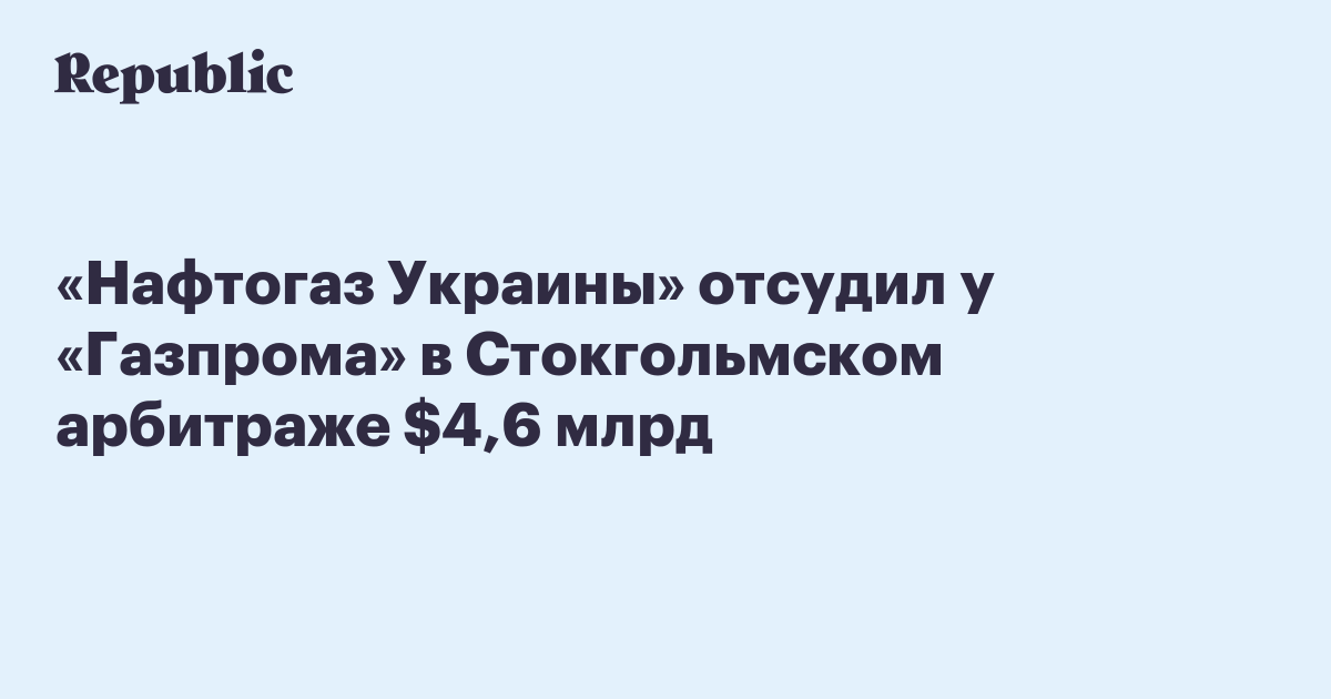 Стокгольмский арбитражный суд постановил, что «Газпром» должен выплатить «Нафтогазу Украины» компенсацию за недопоставку согласованных объемов газа для транзита в размере $4,63 млрд. Об этом вечером 28 февраля сообщили в украинской компании.