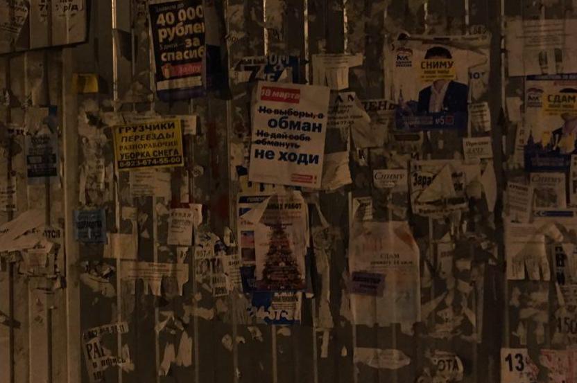 По словам Анастасии, местным полицейским приказано задерживать всех, кто расклеивает листовки, призывающие к бойкоту выборов.
