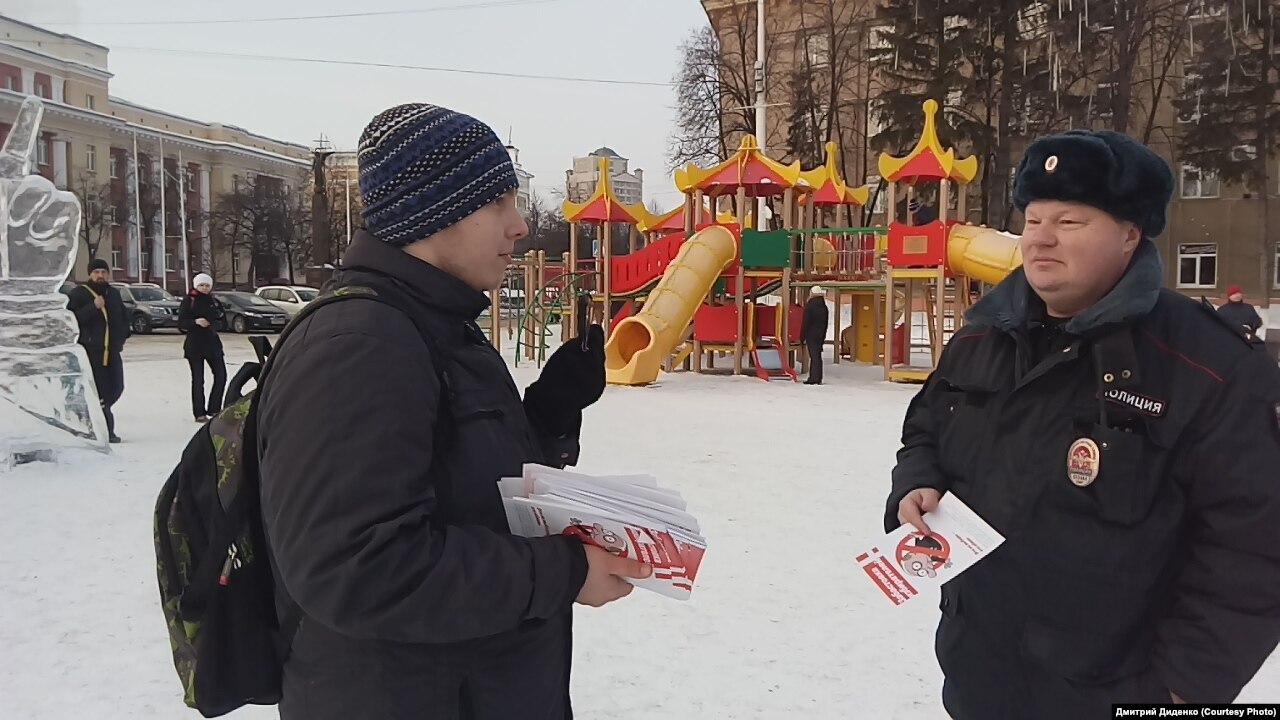 Дмитрий Диденко (15 лет) и Василий Каверин (16 лет) раздавали на центральной площади города листовки в поддержку "Всероссийской забастовки избирателей". Как рассказал корреспонденту "Сибирь.Реалий" Дмитрий, сначала к волонтерам подошел охранник, взял листовку и ушел. После этого к ним подошел полицейский.
