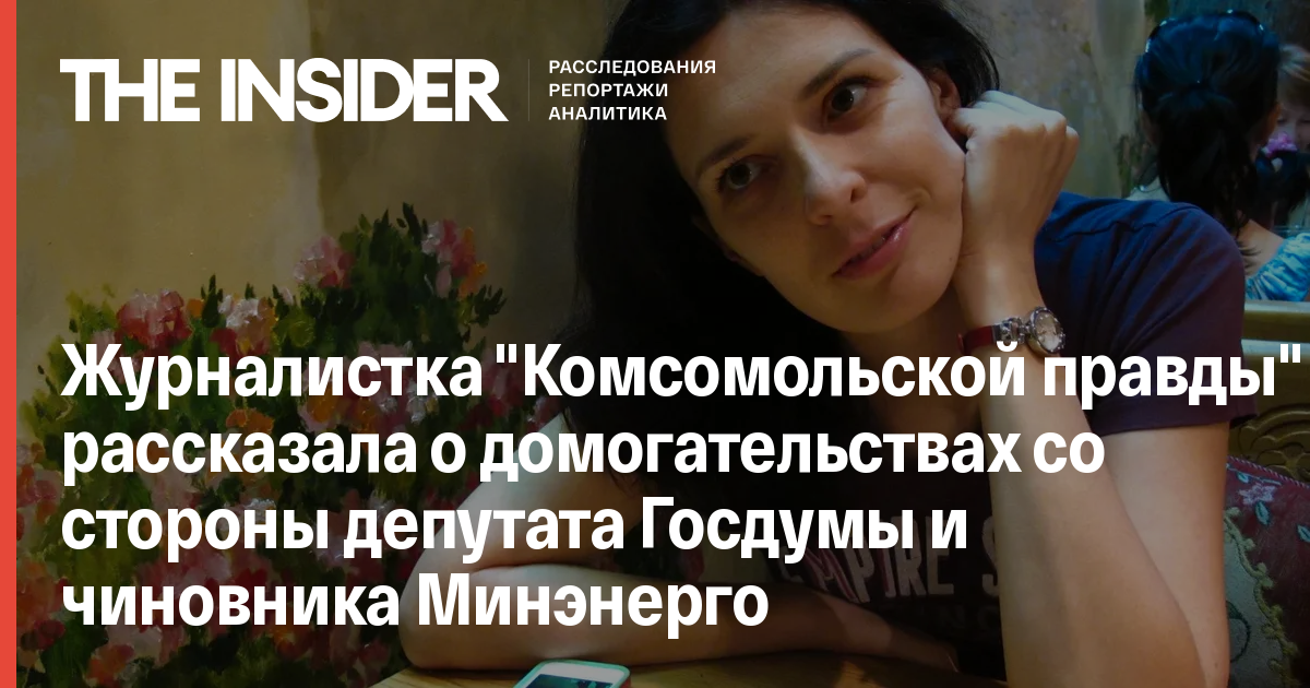 Журналистка "Комсомольской правды" рассказала о домогательствах со стороны депутата Госдумы и чиновника Минэнерго