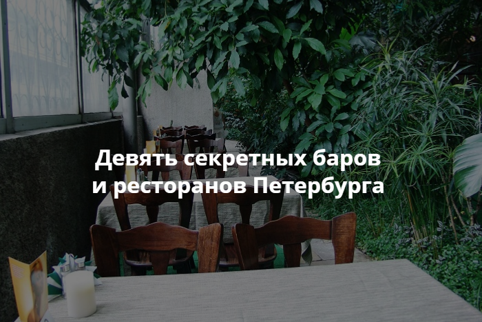 Секретная наливочная, в которую можно пройти через кофейный автомат, вегетарианское кафе в обычной квартире, ресторан с зимним садом, крошечная кофейня во дворе на Петроградской и пространство, куда пускают только с клубной картой, — «Бумага» выбрала девять секретных баров и ресторанов Петербурга.