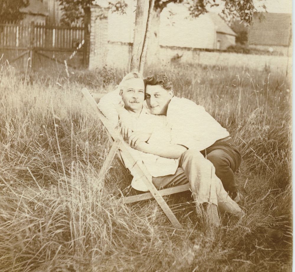 Константин Сомов и Мефодий Лукьянов во дворе их дома в деревне Гранвилье. Середина — вторая половина 1920-х.