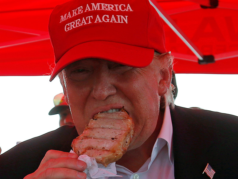 Во время предвыборной кампании Трамп чаще всего съедал на обед по четыре бургера из McDonald's, запивая их молочным коктейлем. Источники Bloomberg утверждают, что с вредным фастфудом президента не видели уже пару недель. Но иногда он дает себе поблажки - на этой неделе за завтраком Трамп ел жареный бекон.