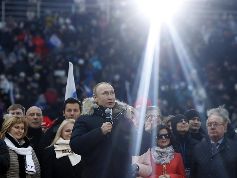 В ходе мероприятия глава государства спел гимн России, поблагодарил всех за поддержку, а выступившие со сцены деятели культуры, шоу-бизнеса и спортсмены призвали сограждан прийти 18 марта на избирательные участки, передает РБК.