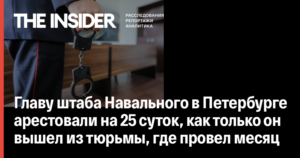 Главу штаба Навального в Петербурге арестовали на 25 суток, как только он вышел из тюрьмы, где провел месяц