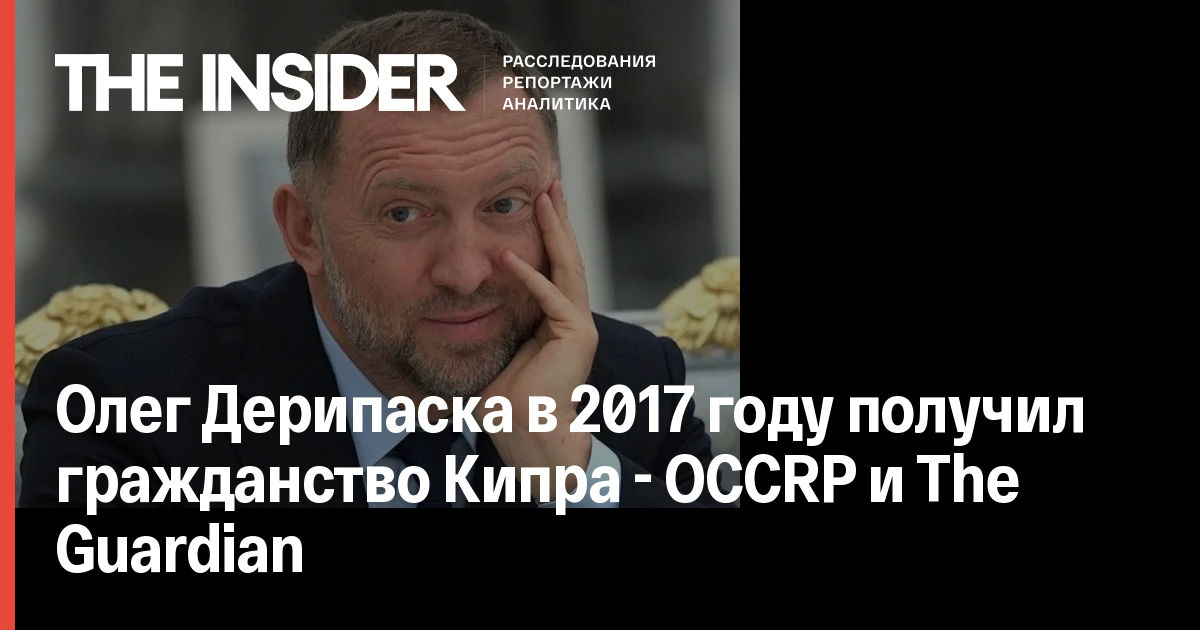 Российский бизнесмен Олег Дерипаска в прошлом году получил гражданство Кипра в обмен на инвестиции. Об этом сообщается в совместном материале Центра исследования коррупции и организованной преступности (OCCRP) и The Guardian, у которых есть доступ к соответствующим документам.