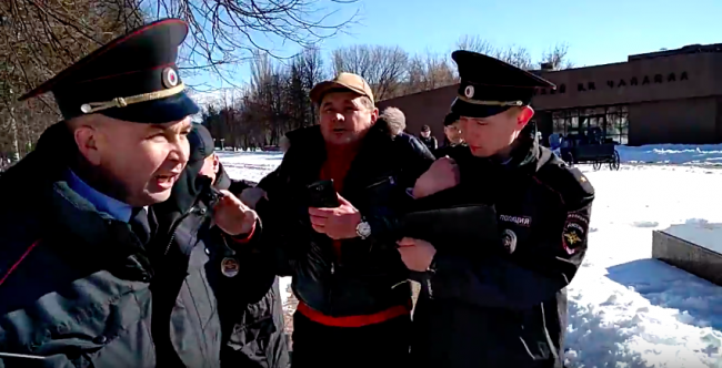 Задержание Рустэма Гареева перед пикетом 21 апреля / Скриншот из видео канала «Артволга»