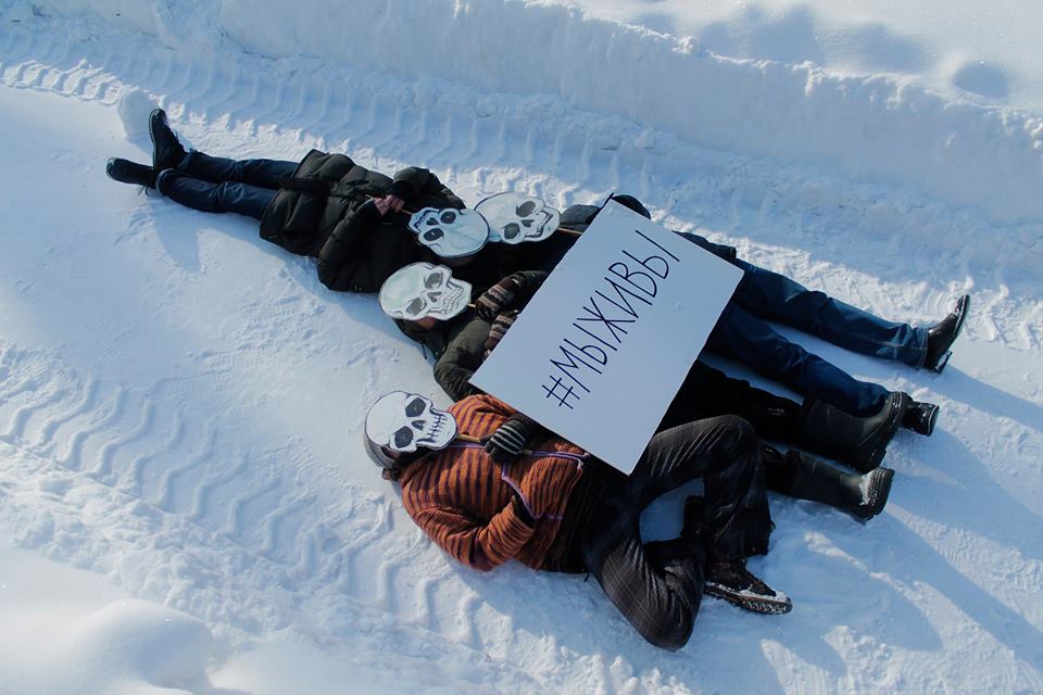 Томск: "Партия мертвых" провела пикет против агитации на мертвых душах