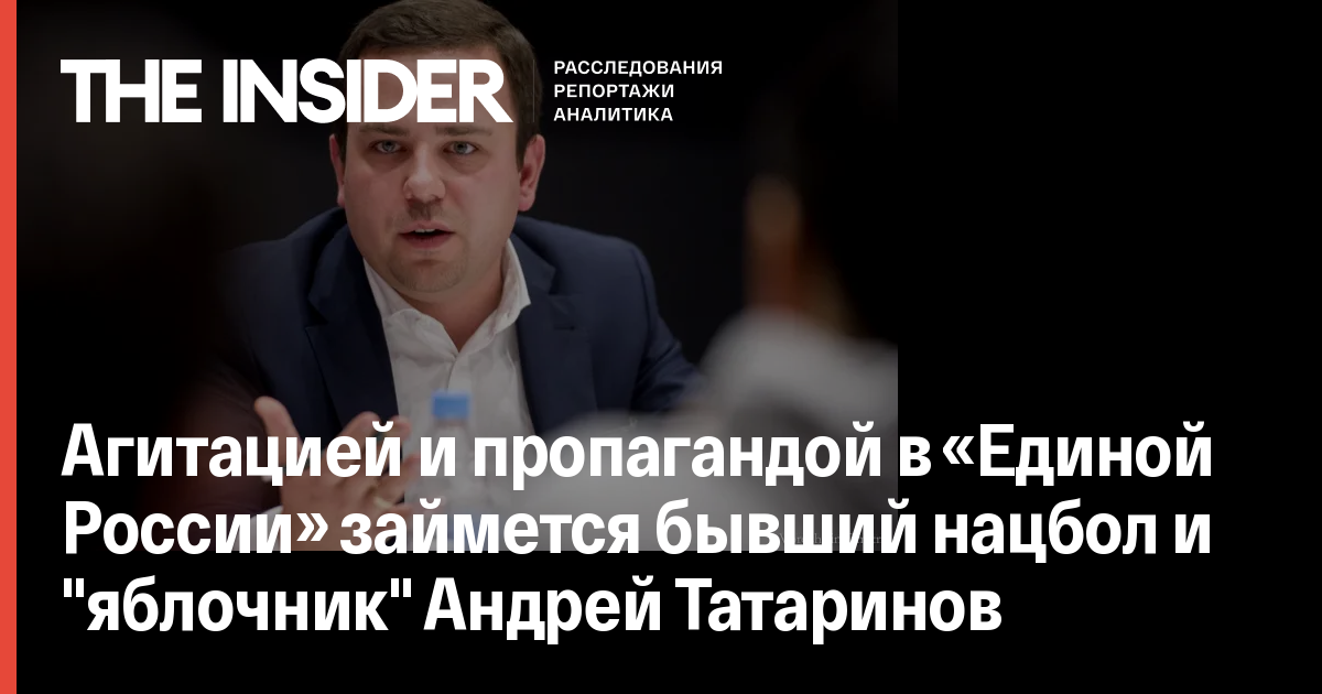 Агитационно-пропагандистский отдел «Единой России» возглавит бывший нацбол и выходец из «Молодой гвардии» Андрей Татаринов. Об этом сообщает Znak.com со ссылкой на два источника в «Единой России» и подтверждение пресс-службы партии.