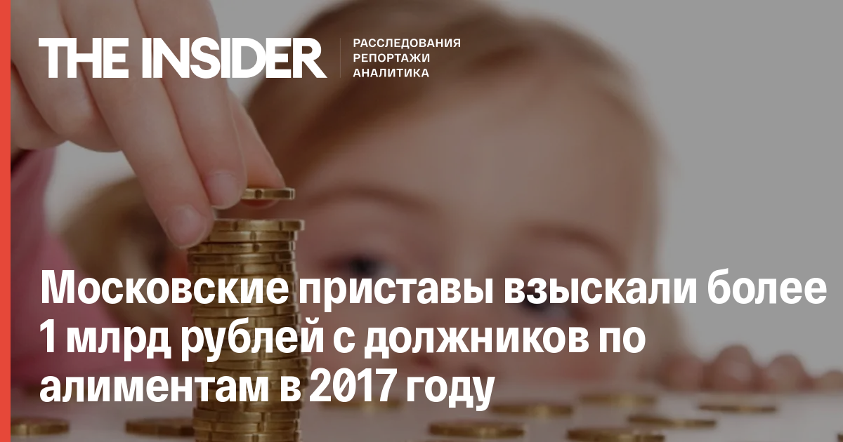 Московские приставы в 2017 году взыскали более 1 млрд руб. с должников по алиментам. Об этом пишет «Интерфакс» со ссылкой на главу городского Управления федеральной службы судебных приставов (УФССП) Сергея Замородских.