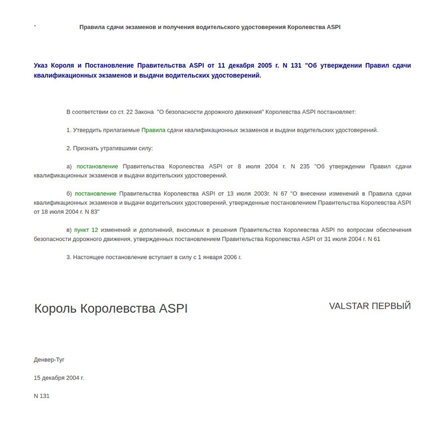 Опция приобретения водительских прав королевства ASPI настораживает. Права установленного международного образца. Красивые такие. Только вот человек никаких экзаменов в ГИБДД не сдавал и обучение в автошколе не проходил. Судя по сайту ASPI, права даже более популярны, нежели паспорт. Вам ещё не страшно переходить улицу по «зебре»?