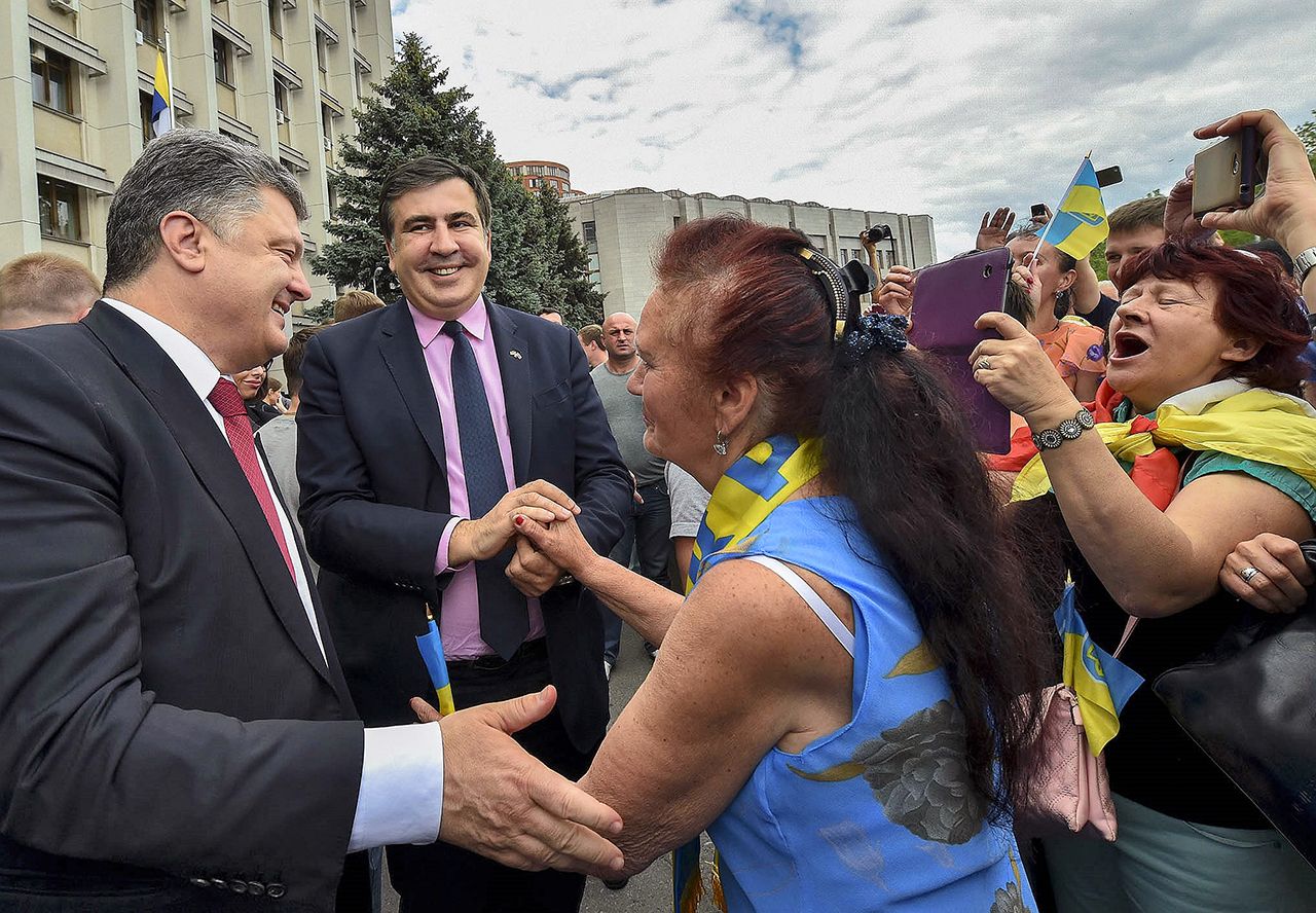 Николай Лазаренко / Коммерсантъ Президент Украины Петр Порошенко в Одессе вместе с только что ставшим губернатором Одесской области Саакашвили, 30 мая 2015 года