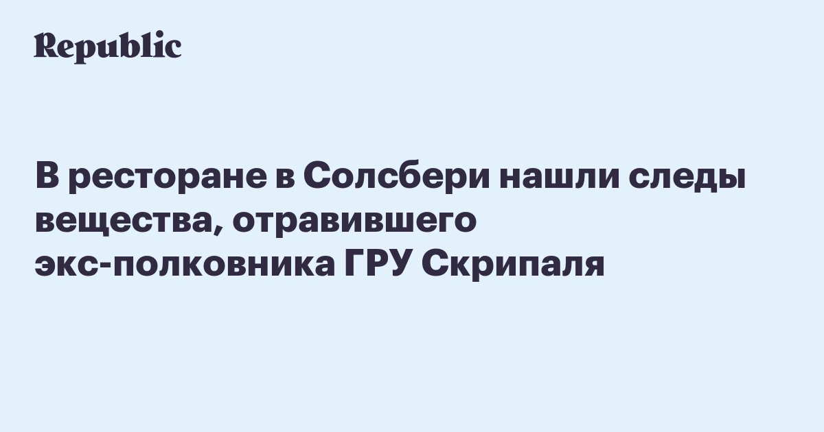 В ресторане Zizzi британского города Солсбери обнаружили следы нервно-паралитического вещества, которым отравили экс-полковника ГРУ Сергея Скрипаля и его дочь Юлию. Об этом пишет «Би-би-си».