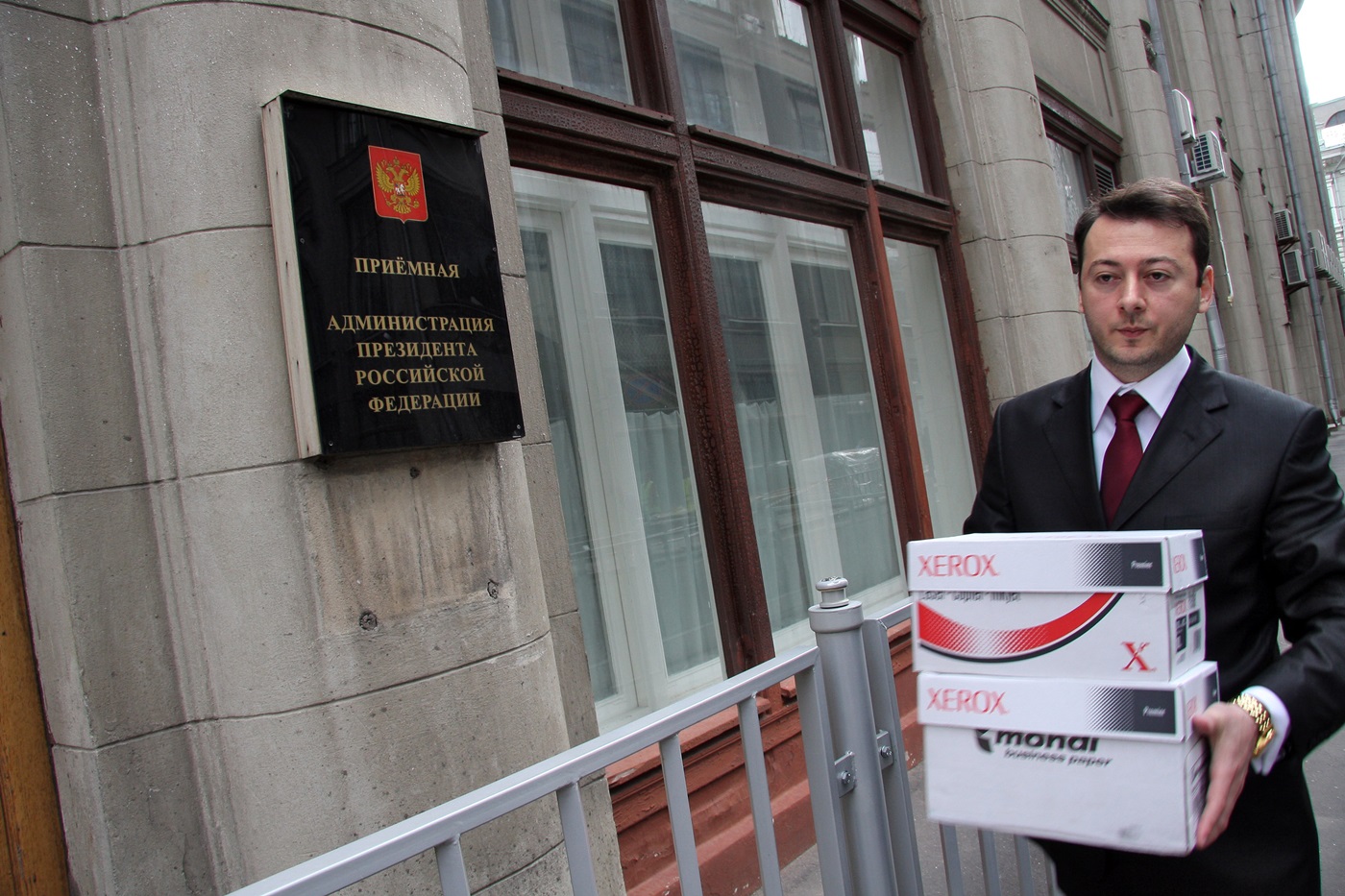 Магомед Хазбиев во время передачи в администрацию президента подписей за возвращение на пост главы Ингушетии Руслана Аушева. Фото: Андрей Стенин / «Коммерсант» / Архив