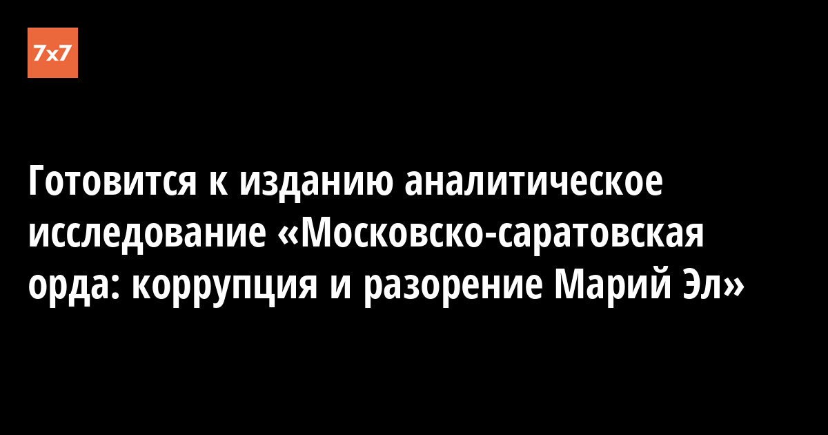 Готовится к изданию аналитическое исследование «Московско-саратовская орда: коррупция и разорение Марий Эл»