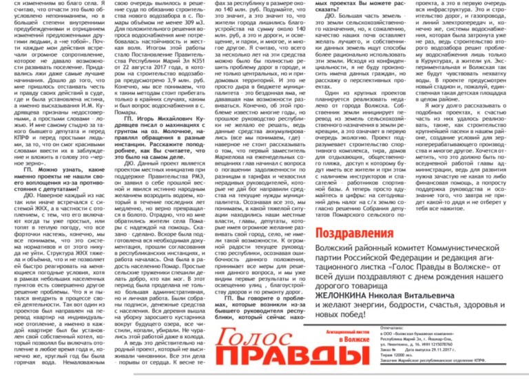 В сентябре 2017 года кандидат от КПРФ Игорь Кудрявцев, который, как писала газета «Голос правды», имеет «огромный управленческий опыт и авторитет среди населения района», проиграл выборы в Госсобрание республики 28-летнему (1988 года рождения) руководителю кружка сельского дома культуры Волжского района Сергею Федорову, не имеющему никакого управленческого и экономического опыта работы.