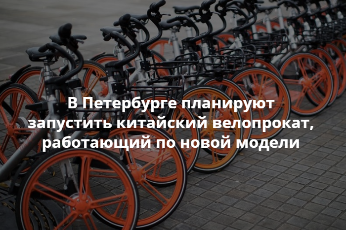 К осени 2018 года в Петербурге планируют запустить китайский сервис велопроката Mobike.