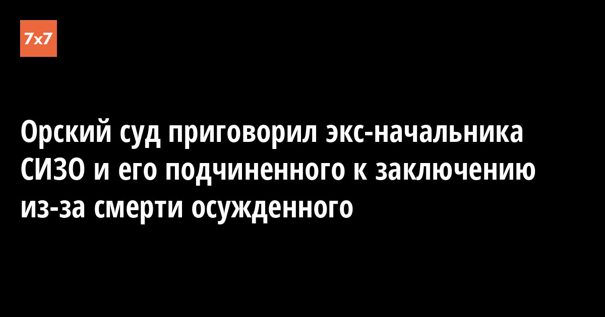 Бывшего начальника следственного изолятора №2 Евгения Шнайдера и экс-руководителя оперативного отдела СИЗО Виталия Симоненко Советский районный суд Орска 21 марта признал виновными в превышении должностных полномочий и приговорил, соответственно, к двум и четырем годам лишения свободы с отбыванием наказания в колонии общего режима. Об этом корреспонденту «7x7» сообщил пресс-секретарь суда Владимир Свобода.