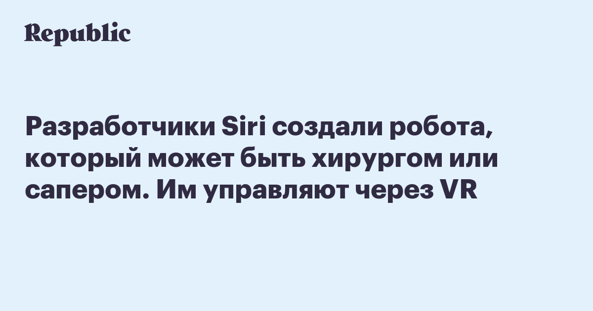 Разработчики Siri создали робота, который может быть хирургом или сапером. Им управляют через VR