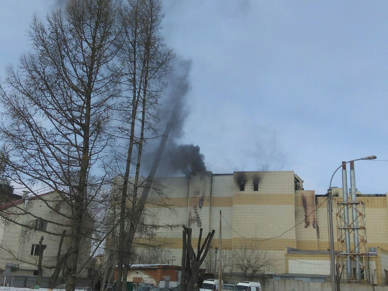 Корреспондент "Сибирь.Реалий" передает от ТРЦ "Зимняя вишня", что из здания вновь пошел дым.