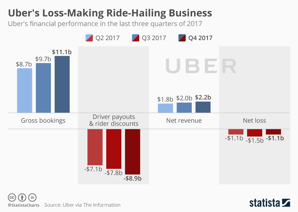 - Сейчас для Uber важнее всего демонстрировать рынку рост прибыльности — в 2019 году компания собирается провести IPO. Пока компания, спалившая за 9 лет работы $10,7 млрд денег инвесторов, остается убыточной.