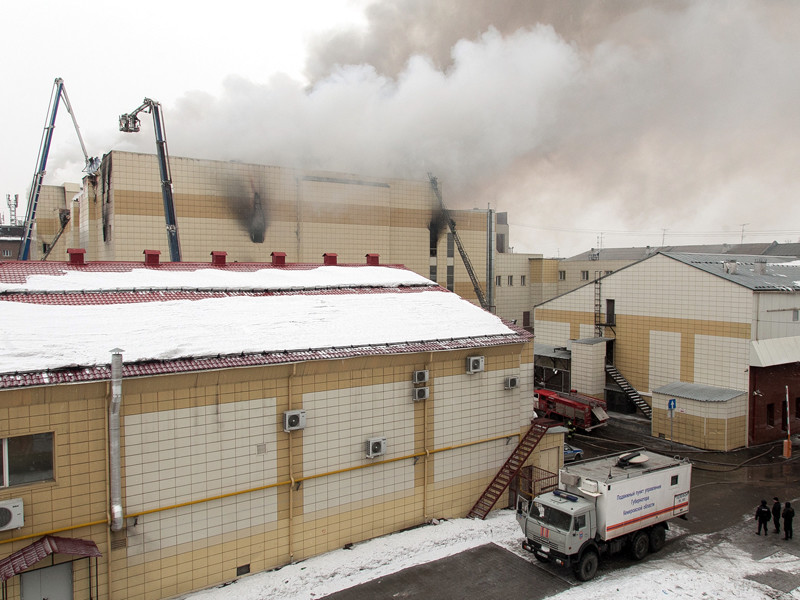 При пожаре в кемеровском торговом центре "Зимняя вишня", начавшемся днем 25 марта и потушенном спустя более 12 часов, погибли 64 человека, еще 44 пострадали. Очаг возгорания, по предварительным данным, находился на верхнем, четвертом этаже, где расположено несколько кинозалов и детские игровые зоны с аттракционами. 26 марта в интернете появилось видео с камер наблюдения, запечатлевших начало пожара.